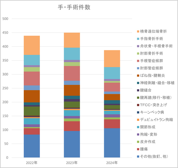 | 手・手術件数 | 2022年 | 2023年 | 2024年 |